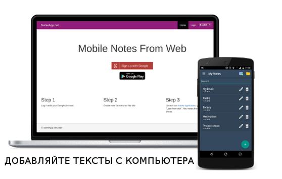 8. Добавляйте тексты и заметки в блокнот через браузер на сайте http://notesapp.net