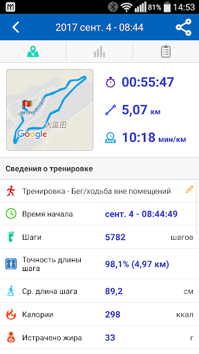 o Приложение отображает полные и подробные исторические данные по тренировкам, аналитические диаграммы и маршруты на Карте Google
