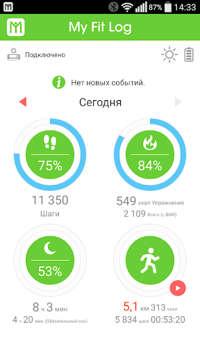 Приложение My Fit Log идеально работает с Wristband/Smartwatch, ежедневно отслеживая и записывая ваш прогресс тренировок и качество сна. Wristband/Smartwatch позволяет ставить различные цели, чтобы мотивировать себя на более интенсивные тренировки, а приложение My Fit Log выдает дружеские уведомления о различных событиях непосредственно на Wristband/Smartwatch, таких как входящие вызовы, эл. письма, сообщения, события календаря, уведомления из социальных приложений. Во время тренировок вы можете в реальном времени просматривать данные о своем прогрессе из приложения My Fit Log на экране Wristband/Smartwatch, в том числе частоту сердечных сокращений (ЧСС), скорость, расстояние, расход калорий и т.п. Помимо отслеживания тренировок My Fit Log также позволяет создавать персональные программы тренировок, помогающие тренироваться и достигать различных уровней своих фитнес-целей. Тренироваться всегда интереснее с друзьями. С помощью удобной функции «Друзья по фитнесу» можно приглашать друзей на тренировки, где бы они ни были, и мотивировать друг друга словами поддержки. Более того, приложение My Fit Log позволяет легко сохранять резервные копии данных о тренировках на Google Диск и в любой момент восстановить их несколькими нажатиями.