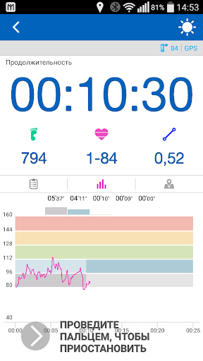 o Приложение выводит подробную статистику и диаграммы по темпу, расстоянию, времени, скорости, высоте над уровнем моря и потрачено калорий