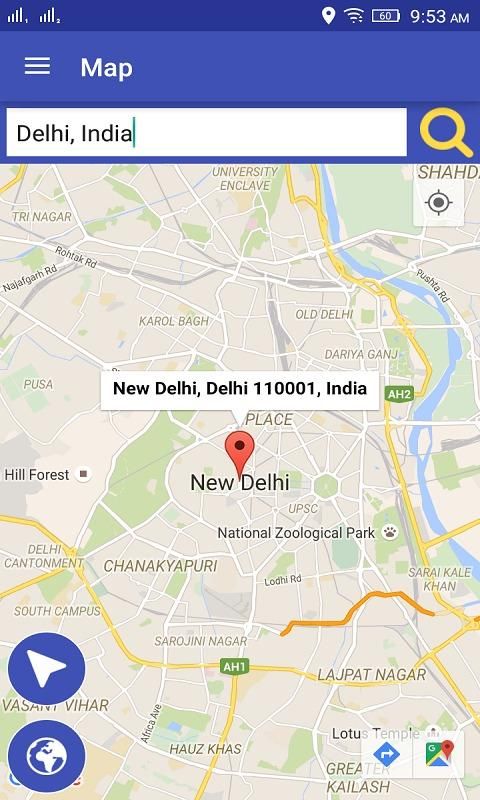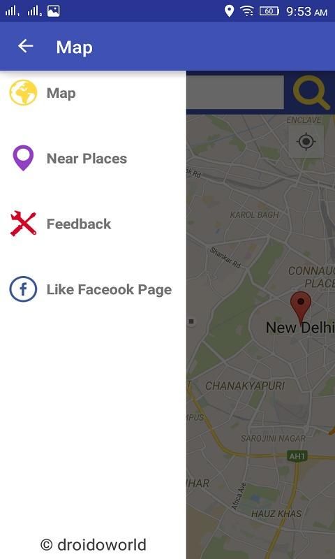 My Map gives you navigation and map facility even in very low space. Travel around the globe or look around the world with a swipe of your finger and get live Maps, GPS Navigation and Directions! Find your current location or search for an address and navigate to your destination. With My Map app you always get you destination and navigate easily. MAP TYPES: ----- 1. Normal Map, 2. Satellite View Map, 3. Hybrid Map, 4. Traffic Map, MAP FEATURES: ----- 1. Current location and find any place 2. Navigate you to your destination, Also Google navigation integrated 3. Display Route via Drive,Public Transport, Walk with details (Km,Time required to reach) 4. Find Near Place like, Airport, Bus Stand, Bank, Church, Hospital, Restaurants etc 5. Find place with exact location with details (Name, Actual Address and Contact Details) Additional Feature: ---- 1. Google Map is integrated, You can use it directly in middle of the app and don't need to type address/location again and again 2. Very less(Hardly 20 MB) space is required with all features - Another applications require more then 100 MB. 3. Simple and High performance app compare to others. 4. Pure color - Lollipop layout 5. Developer Support Application is available in following languages: 1. English 2. Spanish 3. French 4. German 5. Russian 6. Chinese Developer Support: EMail: droidoworld@gmail.com Facebook Page: https://www.facebook.com/androidPAIDAppsForFREE