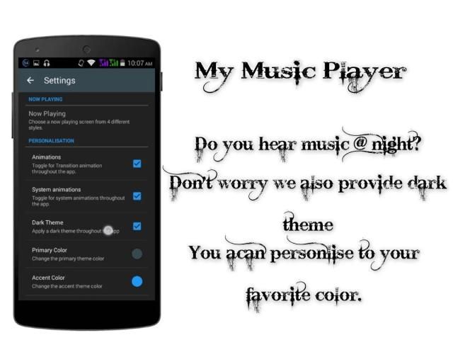 Мы предлагаем вам мою Music Player Разработано Кино Часы Team