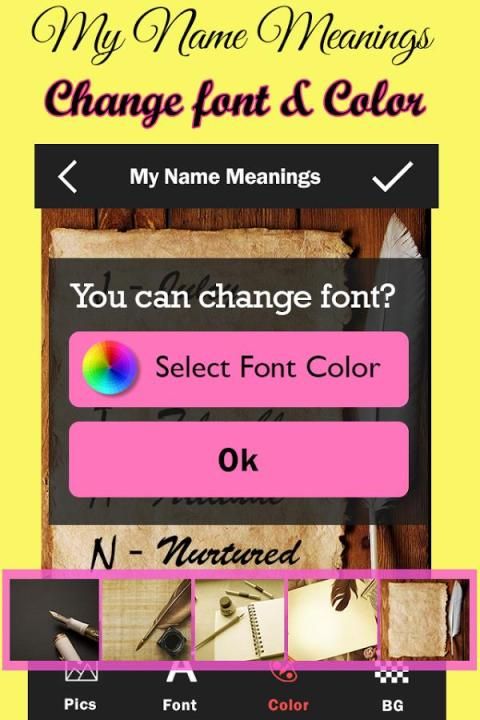 Мое имя означает: Стильное приложение имени обеспечить фактическое значение названия с красивым фоном и потрясающей функциональностью распространяется на имя текста.