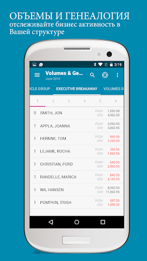 В разделе Объемы и Генеалогия Вы можете получить информацию о том, что происходит в Вашей структуре. Следите за деятельностью своей Центральной Группы и Отделившихся Лидеров, заказами, отчетами о выплате премиального вознаграждения и Вашими отчетами GPS. В разделе контактов, Вы можете просмотреть контактную информацию, сделать звонок, отправить электронное письмо или узнать адрес своих нижестоящих партнёров. Мобильное приложение My Nu Skin содержит всю ключевую информацию раздела Объемы и Генеалогия, к которой легко получить доступ, где-бы Вы не находились.