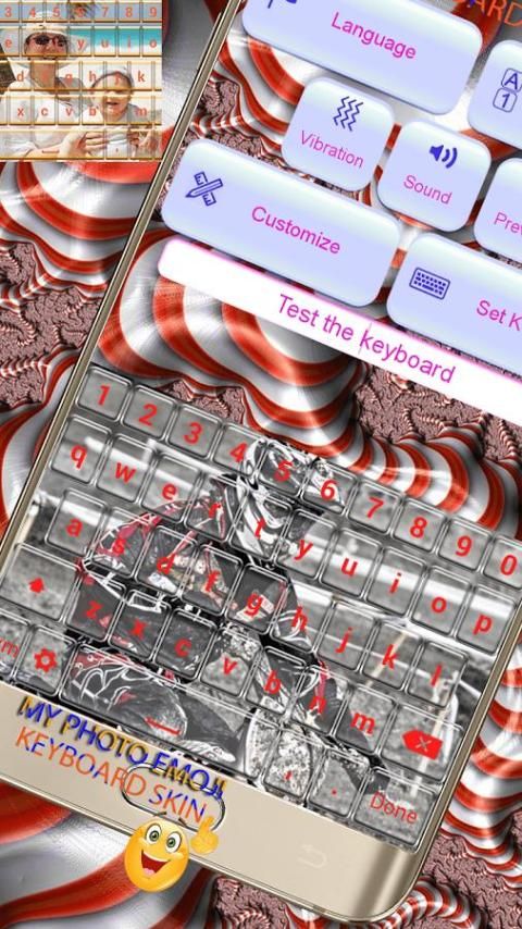 You'll be lucky to hear that there is a new free app which lets you personalize the look of your mobile keyboard in a heartbeat! Download ♚My Photo Emoji Keyboard Skin♚ app which provides you with a more beautiful way of typing and sending text messages to your loved ones. Thanks to our fancy keyboard color changer this scenario will be sent to oblivion. You get frustrated whenever you start using your standard touch screen keyboard cover?