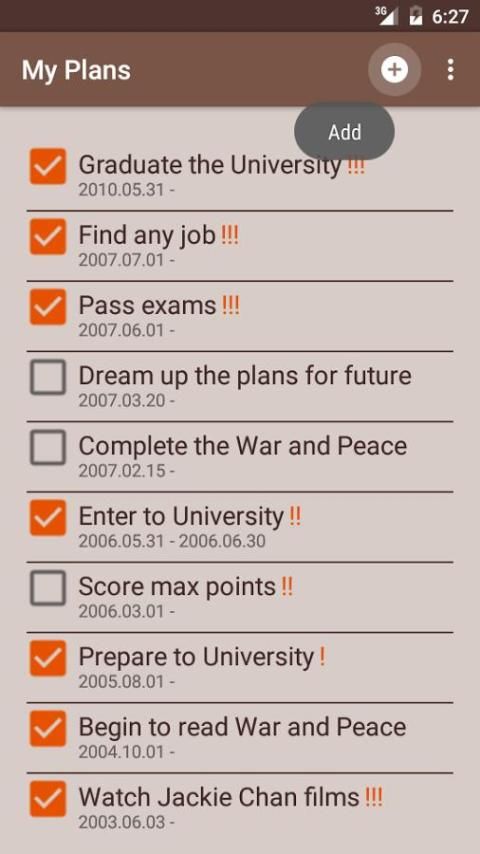 Мои планы - прикладное программное обеспечение предназначено для записи планов и целей.