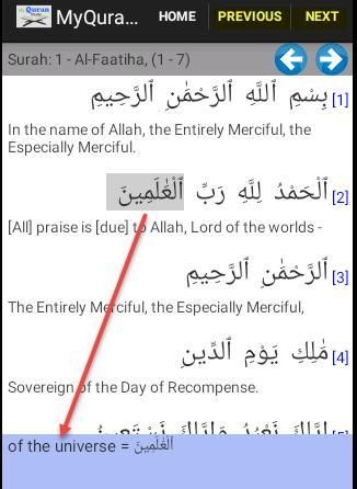 Это приложение поможет вам узнать значение каждого слова в Коране. Выберите Сура и Ayah для отображения полного стих, а затем нажмите на арабского слова, чтобы получить английское значение. Это также показывает значение каждого стиха. Надеюсь, что это приносит пользу вам, инша Аллах. Оценить его и поделиться им.