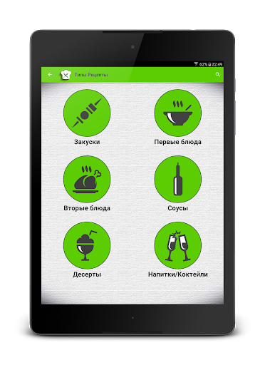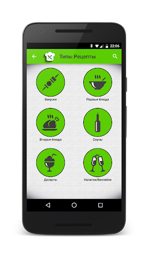● Вы можете сохранить рецепты, сгруппированных в закуски, первые блюда, вторые блюда, соусы, десерты и напитки / коктейли.