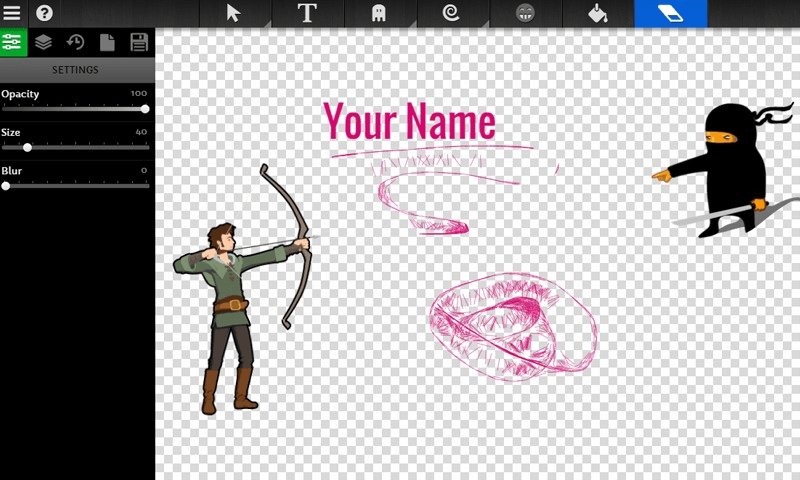In this app you can draw, add pictures, upload your own, share, and print them out.