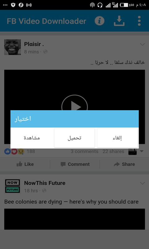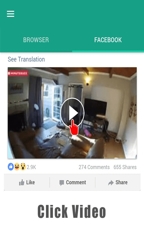Download Facebook videos and GIF - Save and share videos from Facebook with the most advanced video downloader, fast and easy to use! - The only app for Android that can download HD videos ! - Send a video or GIF to your friends on WhatsApp or Telegram directly! - Find your watched, liked, saved videos, and much more! - Find your liked, saved GIF, and much more! - Find and download any video by browsing directly the Facebook website - Download shared videos of your friends - Download videos from your news feed, groups or pages This is the former MyVideoDownloader app. If you have any question, feel free to contact me. Would you like to help translating the app to your language? Join us at https://giannz.oneskyapp.com Download not working? Be sure to have granted write permissions: system Settings -> Applications -> VideoDownloader -> Permissions This app doesn't collect nor transmit any of your data. This app is not endorsed, supported or certified by Facebook and it is provided by a third party that does not relate to Facebook.