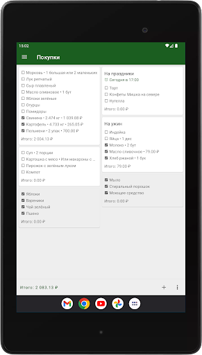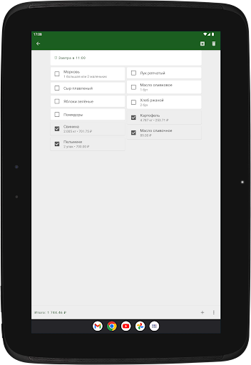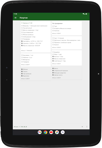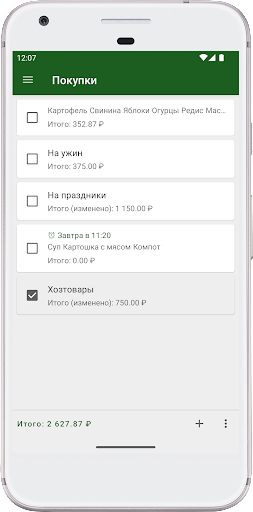 - Раздельный подсчёт итоговой суммы купленных и не купленных товаров