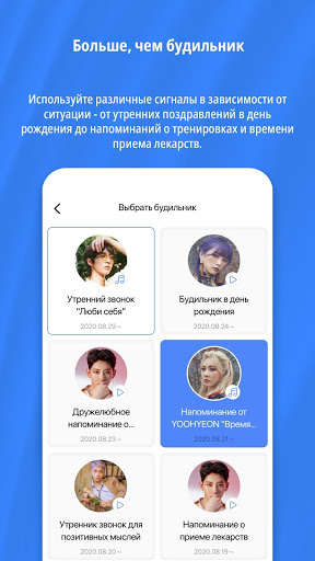От утренних будильников до различных напоминаний, необходимых в течение дня, ваш любимый артист и его чарующий голос наполнят ваш день позитивными эмоциями.