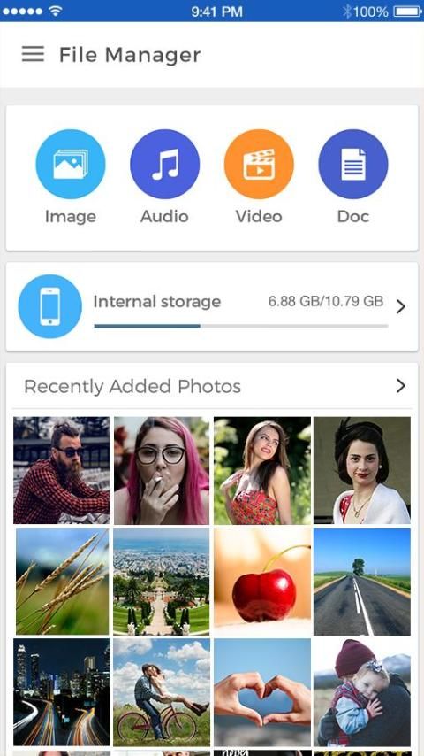 • Легкий просмотр файлов: просматривать файлы легко по категориям прямо с главного экрана менеджера файлов: изображения, видео, музыка, приложения, загруженные и Избранное.