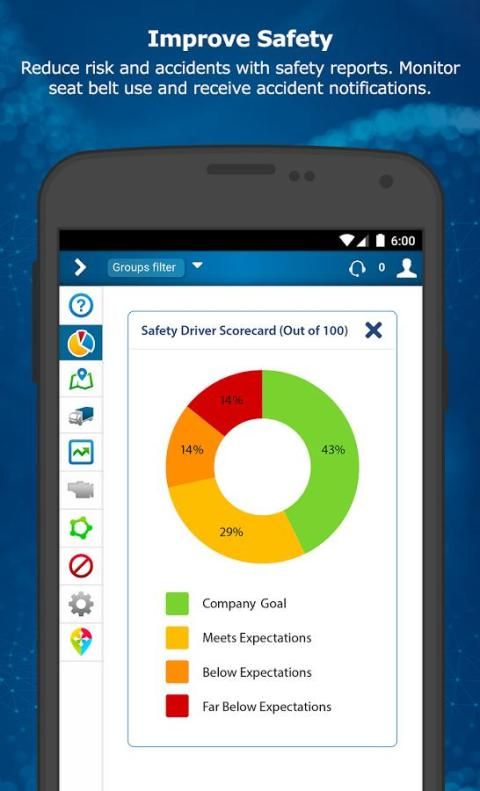 Отслеживание в режиме реального времени местоположение GPS на живой карте и посмотреть подробную историю поездки для каждого транспортного средства. Установка пользовательских правил бизнеса и уведомления о местоположении, активности, превышение скорости, резком торможении, и использование ремней безопасности.