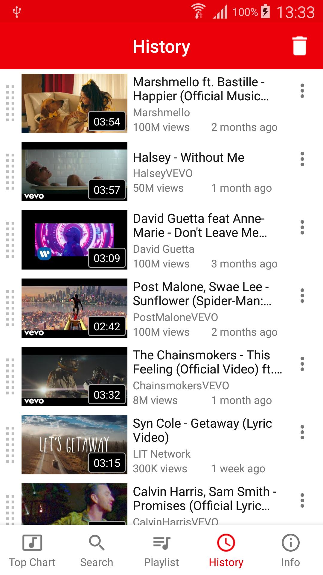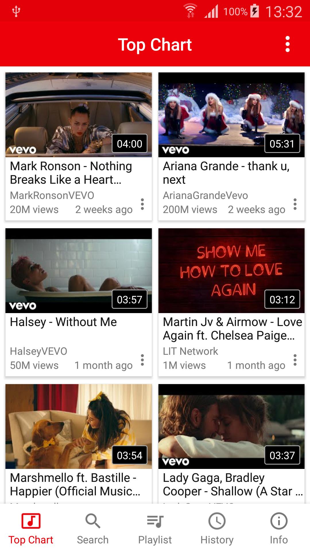 No need to download songs anymore: You can watch and listen to millions Music and Video.