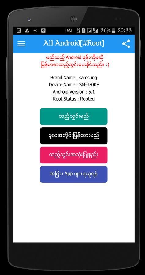 Корень ေဖာက္ ဖို 4 ကေ တာ့ ကိုယ့ ္ ဖုန္း ရဲ့ Модель ဗား ရွင္း အ လိုက္ Google မွာ ရွာေ ဖြ ၿ ပီး