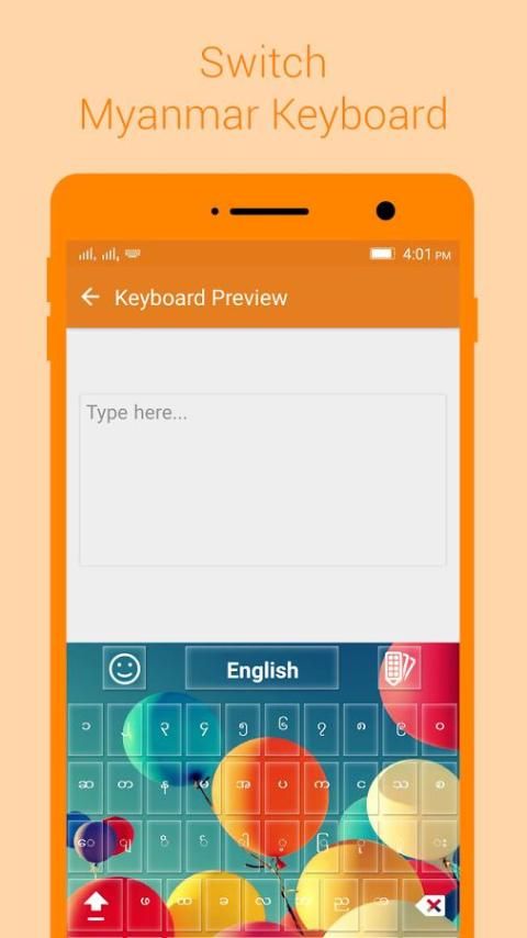 Мьянма клавиатура дает возможность настроить собственную настройку. Тысячи Emoji, эмоции и улыбки интегрированы, которые будут держать ваш интерес в чате. Изменение клавиатуры на английский и Мьянма в той же клавиатуры. Изменение и настроить параметры с помощью кнопки настройки в пределах клавиатуры Мьянмы.