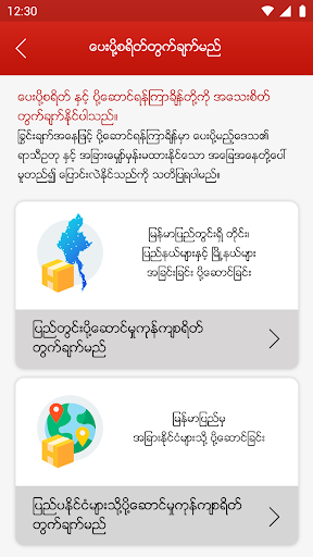 Это приложение будет поддержкой для местного пост -кода, расположение почтового отделения, информацию о местоположении и службу отслеживания в почтовом отделении от Myanmar Post.
