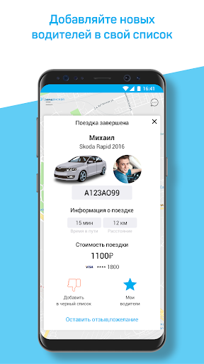 Больше нет необходимости давать водителям номер своего сотового телефона или записывать их номера в свою записную книжку – вся эта информация с профилями водителей и историями поездок хранится в вашем мобильном приложении. Местонахождение водителя, которого вы выбрали, становится доступно для вас за 15 минут до заказа.