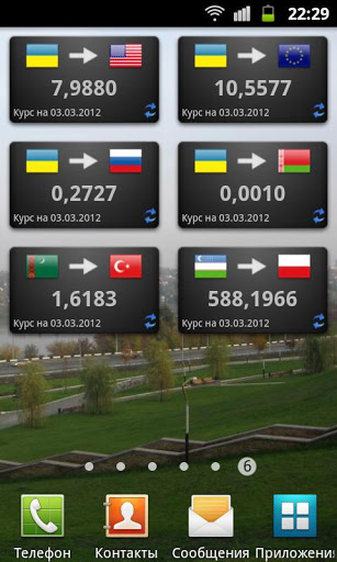 1. Это приложение-виджет. Вы не найдёте иконки запуска меню. Для того, чтобы добавить виджет, нужно вызвать контекстное меню рабочего стола, выбрать "Виджеты" и найти в списке "Курсы валют НБУ".