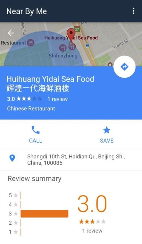 >> Детальный вид контакта, рейтинги, фотографии, адрес, расстояние и местоположение каждого места.