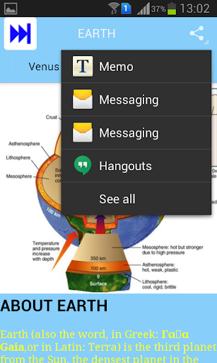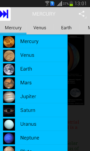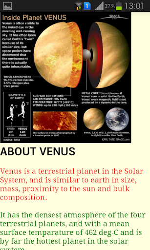 1. Offline application contains tabular information with infographics about the planets of the solar system.