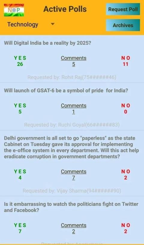 NOP is a generic mobile app for Opinion Poll service in India.