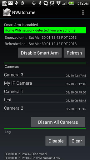 NWatch.me is a website designed to help you to use IP camera to protect your home. This App provides you with the most handy tool to check your camera status, review picture. It also offer you the unique Smart Arm function, so you never need to worry about extra motion alert email or forget to arm your camera manually.