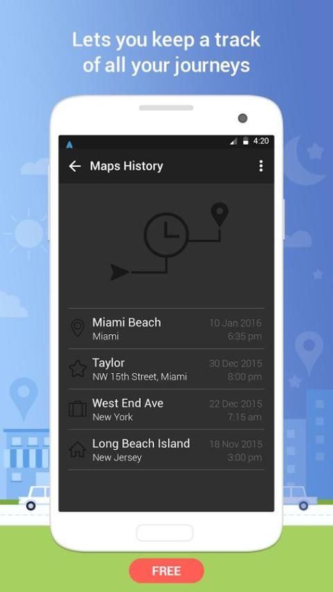 Функция History позволяет постоянно отслеживать все ваши путешествия включая имена, адреса назначения и детали времени.