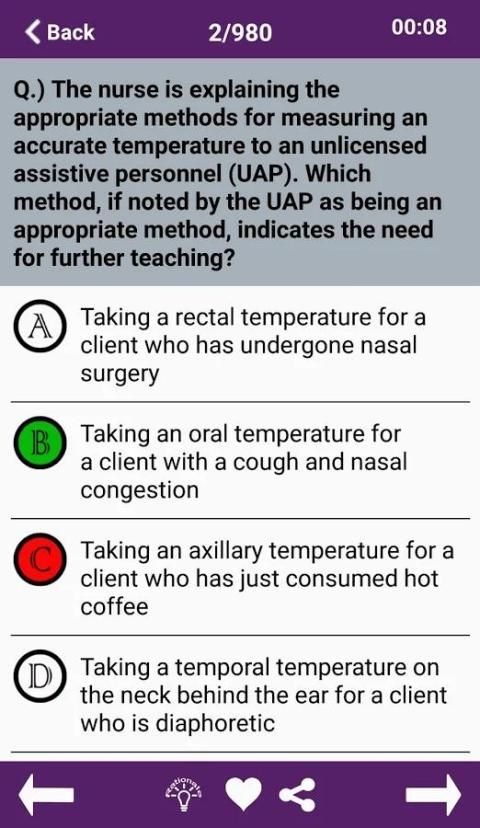 NCLEX-RN Exam Prep приложение предоставляет различные типы NCLEX-RN Mock испытаний, и вы можете проверить свои ответы, и это дает обоснование для каждого вопроса. Даже вы можете поделиться вопросы со своими друзьями о помощи в решении.