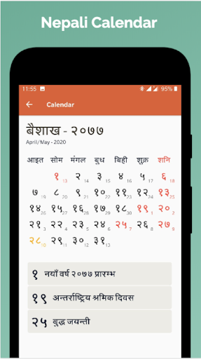 ** Вы можете просматривать непальский календарь со всеми основными фестивалями.