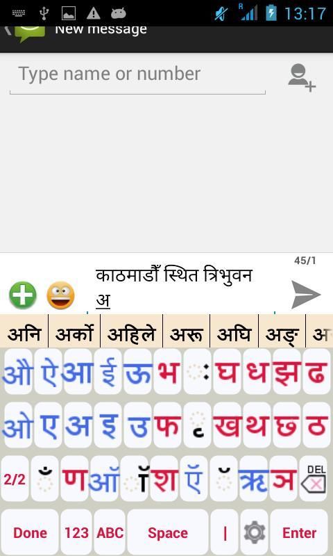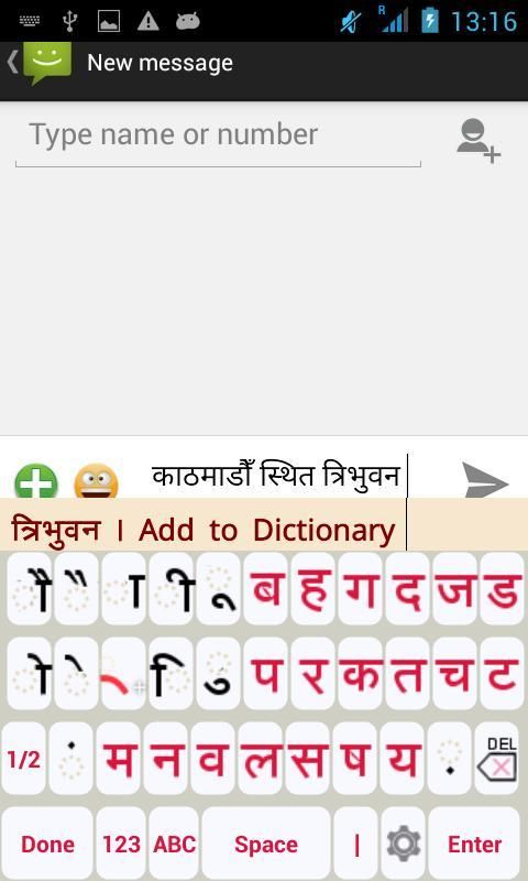 Using this Nepali static keypad, you can write in both Nepali(नेपाली) & English with intelligent and accurate dictionary predictions on both Android phones and tablets. Numbers, symbols, smileys, attractive extras are also supported. This is a static keypad for those who prefer a static keypad with some additional innovations to ease your writing. The keyboard layout is largely of Inscript. This keypad is an IME (Input Method Editor) and hence you will be able to write in all parts of the phone, WhatsApp, Facebook, Address Book etc. The installation is a little different, follow instructions. After Installation on phone/tablet. Step 1: Settings -> Language & Input -> Choose Nepali Static Keypad IME(Check ON) Step 2: Settings -> Language & Input -> Default -> Select Nepali Static Keypad IME. Additional New words can be added to Dictionary, removed from Dictionary. Common messages supported in templates. Custom Signature supported. Keysound & Vibration supported and optional. More!! Fonts with good rendering should be present on your phone or will show boxes or wrong rendering. This Nepali static keyboard is from Luna Ergonomics, the makers of Panini Keypad, the dynamic keypad, download link here. https://play.google.com/store/apps/details?id=com.paninikeypad.nepali Some examples are provided below. क्या = क+ ् (Halant) +य+ा ऋषि = ऋ+ष+ि श्रद्धा = श+ ्+र+द+ ्+ध+ा आबद्ध = आ+ब+द+ ्+ध स्वर्ग = स+ ्+व+र+ ्+ग शिक्षक = श+ि+क+ ्+ष+क विज्ञान = व+ि+ज+ ्+ञ+ा+न बुद्धि = ब+ु+द+ ्+ध+ि गर्नुहोस् = ग+र+ ्+न+ु+ह+ो+स+ ् कार्यक्रम = क+ा+र+ ्+य+क+ ्+र+म सङ्गोष्ठि = स+ङ+ ्+ग+ो+ष+ ्+ठ+ि आकर्षित = आ+क+र+ ्+ष+ि+त To know how to type all types of Yuktakshars, click the link below: http://paninikeypad.com/conjuncts/nepali Follow above examples, after some time you will used to Nepali static keyboard IME for Nepali typing. Experience this new innovative Nepali static keyboard IME.