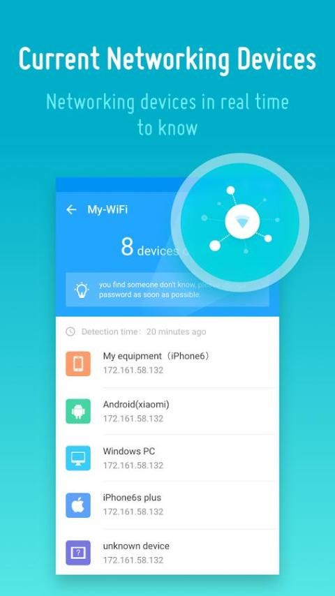 Обширное обнаруживает статус сети, в том числе безопасности Wi-Fi, скорость загрузки, скорость загрузки, сетевых устройств и многое другое. Все с помощью только одного крана.