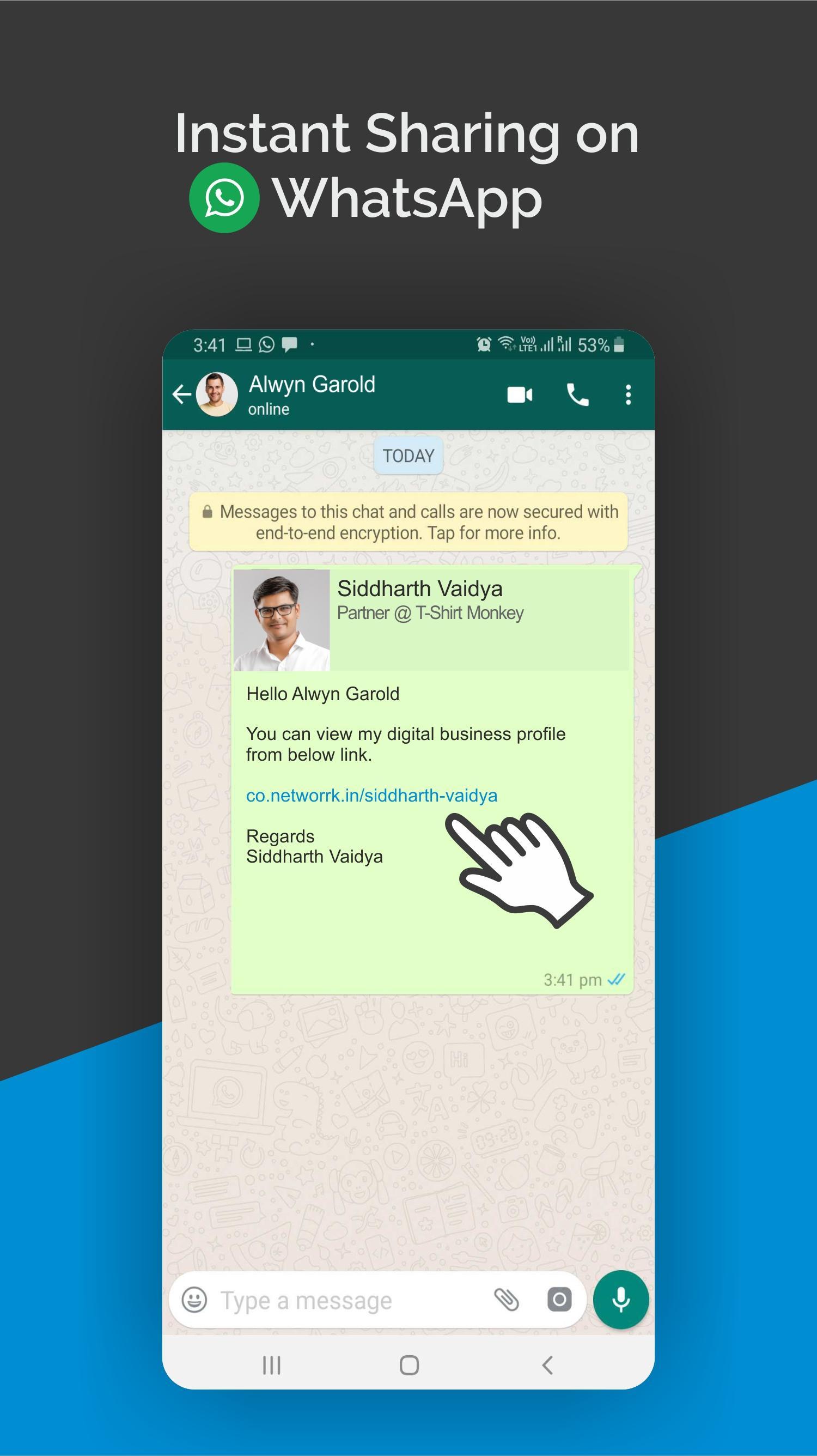 - Sharing Business Profile and digital Catalogs without storing mobile numbers in your phone contact.