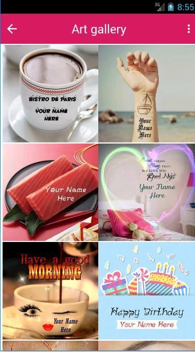 Соберите все ваши любимые фотографии различных типов и настроить их с другим текстом или наименовании. Вы можете создать именованные B'Day торты для ваших друзей и любящих них. Вы также можете поделиться именовании браслет ваших прекрасных друзей. Это также могут быть разделены на Facebook или другой социальной сети.