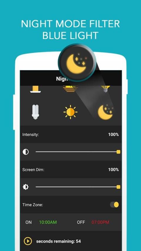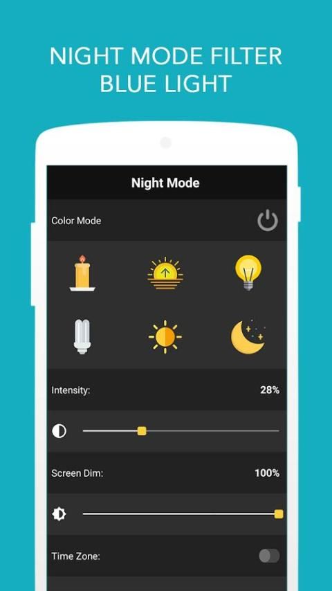 Используйте Ночной режим фильтра Blue Light , чтобы уменьшить зрительное напряжение и это приложение может быть использовано в театрах, чтения, игр, не мешая другим людям. Отрегулируйте яркость экрана так, что вы можете работать на условиях низкой освещенности. Установить интенсивность цвета экрана требует в соответствии с вашей чувствительности глаз.