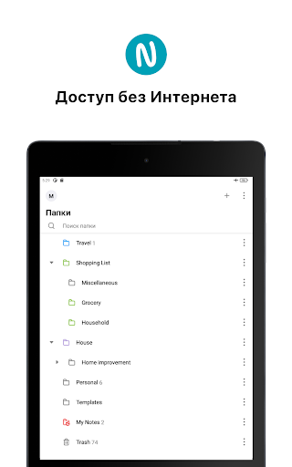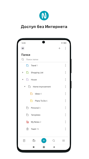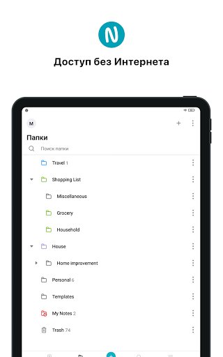 - Создавайте папки и подпапки и распределяйте по ним заметки;