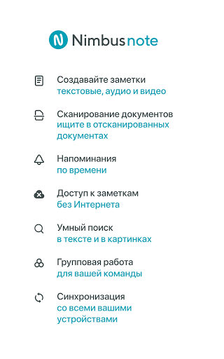 Сохраняйте в Nimbus Note любую важную для вас информацию: заметки, списки задач, идеи, лекции, статьи, интернет-страницы и имейте к ним доступ из любой точки мира. С Nimbus Note можно чувствовать себя абсолютно свободно, не боясь забыть или упустить из виду самое важное. Теперь это практически невозможно!