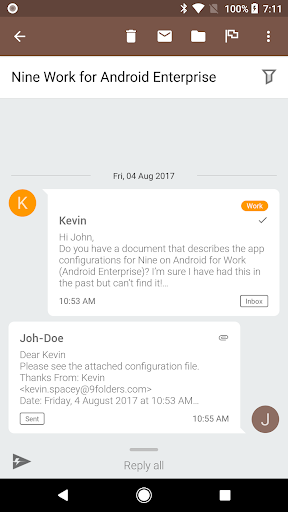 As of today email communication became a critical thing as interpersonal communication skill within an organization or in your daily life. There might be nothing more important than efficient communication in the work of a company. Nine Work is a full-fledged email application for Android based on Direct Push technology to synchronize with Microsoft Exchange Server using Microsoft Exchange ActiveSync, and also designed for entrepreneurs or ordinary people who want to have efficient communication with their colleagues, friends, ‎and family members at anytime, anywhere. You may already have good experience with other E-Mail apps for Android. Regardless of your existing experience, we will give you a superb experience more than anything else. Leveraging E-Mail, Contacts, Calendar, Tasks and Notes on your mobile devices through wireless networks enhances your user experience and dramatically reduces your time.