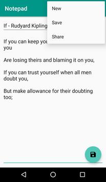* The simplest, stable notepad application without ads. * No unnecessary features that people won't use. Just the basics. * Material Design for the ease of use.