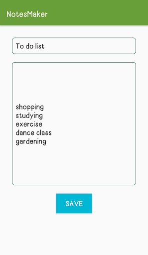 Примечания - это приложение для принятия заметки.Примечания могут быть добавлены отдельно под разными учетными записями Google.Новые ноты могут быть добавлены и отредактированы в любое время.Примечания будут сохранены в приложении, пока пользователь не удалит его.Примечания могут быть удалены, когда пользователь чувствует, что он больше не нужен.Созданные заметки также могут быть переданы с кем угодно.