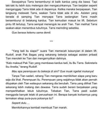 Ketika melamar bekerja ди Perusahan Priambodo Группа дан ditempatkan sebagai sekretaris Ибу Анетта, Тарра tidak menyangka акан bertemu лаги dengan seseorang янь membencinya ди маса Лалу. Apesnya лаги, Karena suruhan Пак Bagas atasannya, Тарра Malah menjadi sekretaris орангутан янь pernah menjadi Синта gorilanya мсэ. Rasa Синта янь sampai sekarang Масих Ada.