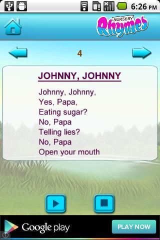 App является сбор телугу и английском Rhymes, с очень простым интерфейсом. Начать с заставкой, то к списку экран выбора языка. При выборе телугу, телугу Восемь Rhymes появятся в виде списка. После выбора одного из листа рифмы. Следующий экран с выбранными лирической рифмы и игрока. Где вы можете прочитать лирический наряду с аудиофайла конкретного рифмы. Восемь Rhymes в каждой языковой категории.