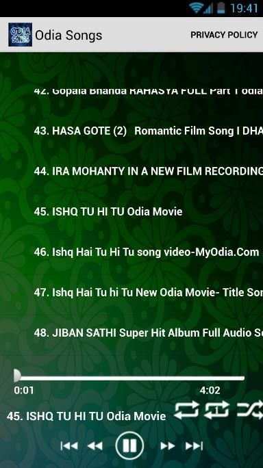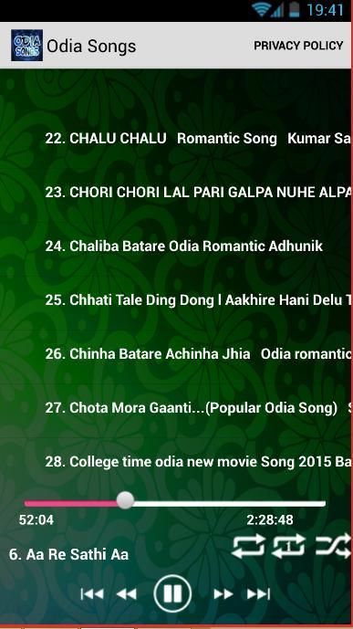 Многие песни Лучшей Одиа, что вы можете слушать здесь. бесплатно установить приложение, выберите песню, которую вы любите и играть. Это приложение обеспечивает только Mp3 Streaming и нет функции загрузки, потому что это может привести к нарушению авторских прав.