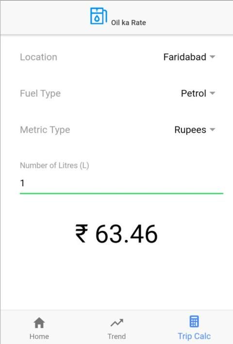 - Trip Calculator to know the total cost for a given number of litres or how many litres for a given amount of money