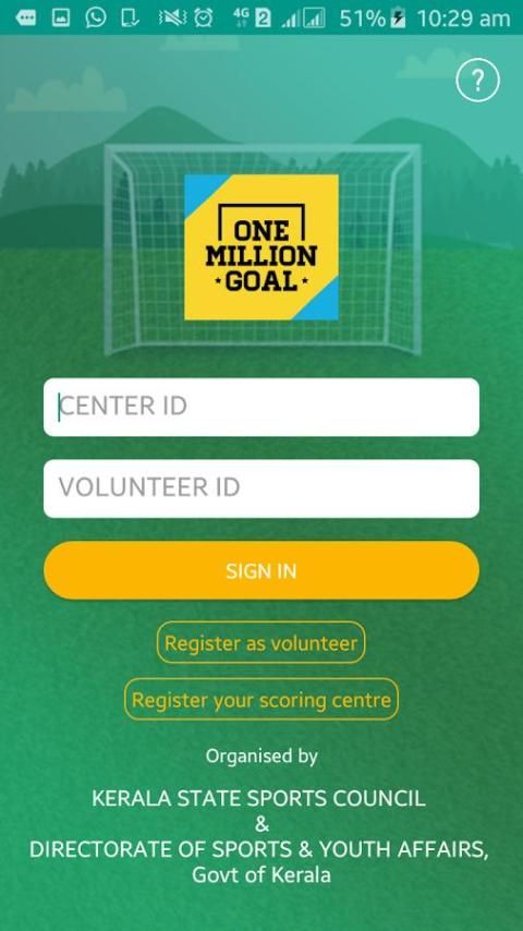 В рамках кампании кубка мира по футболу до 17 лет, штат Керала Государственного совета спорта и Управления спорта и по делам молодежи Говта Кералы совместно с районным советом по спорту, отдел образования, LSGD организует этот мег-событие, а именно: «ОДИН МИЛЛИОНА GOAL». Празднуют FIFA до 17 кубка мира по организации этого штата широкую кампанию под названием «ОДИН МИЛЛИОН GOAL»