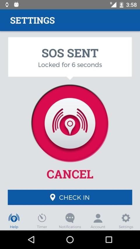 - У вас есть таймер обратного отсчета можно установить к 24 часа, если вы не отменить его, сообщение посылается на ваши SOS контакты с вашего текущего местоположения.