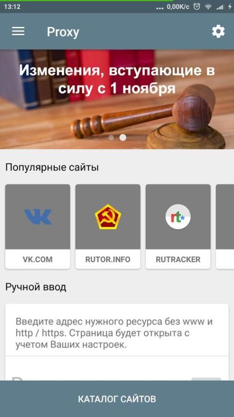 Также Вы можете самостоятельно ввести название сайта из главного экрана приложения, который необходимо посетить, либо который отсутствует в списке.