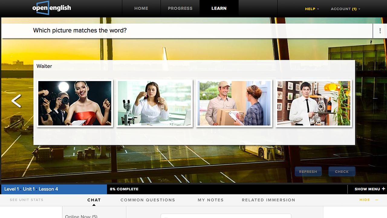 With Open English, you learn English online in a fun and effective way using games and advanced speech-recognition tools.