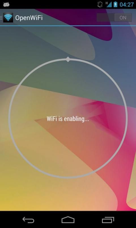 Когда экран выключен, вы можете увидеть, что OpenWiFi делает, просто посмотреть на индикатор уведомления вашего телефона, цвета такие же, как круговой ProgressBar.